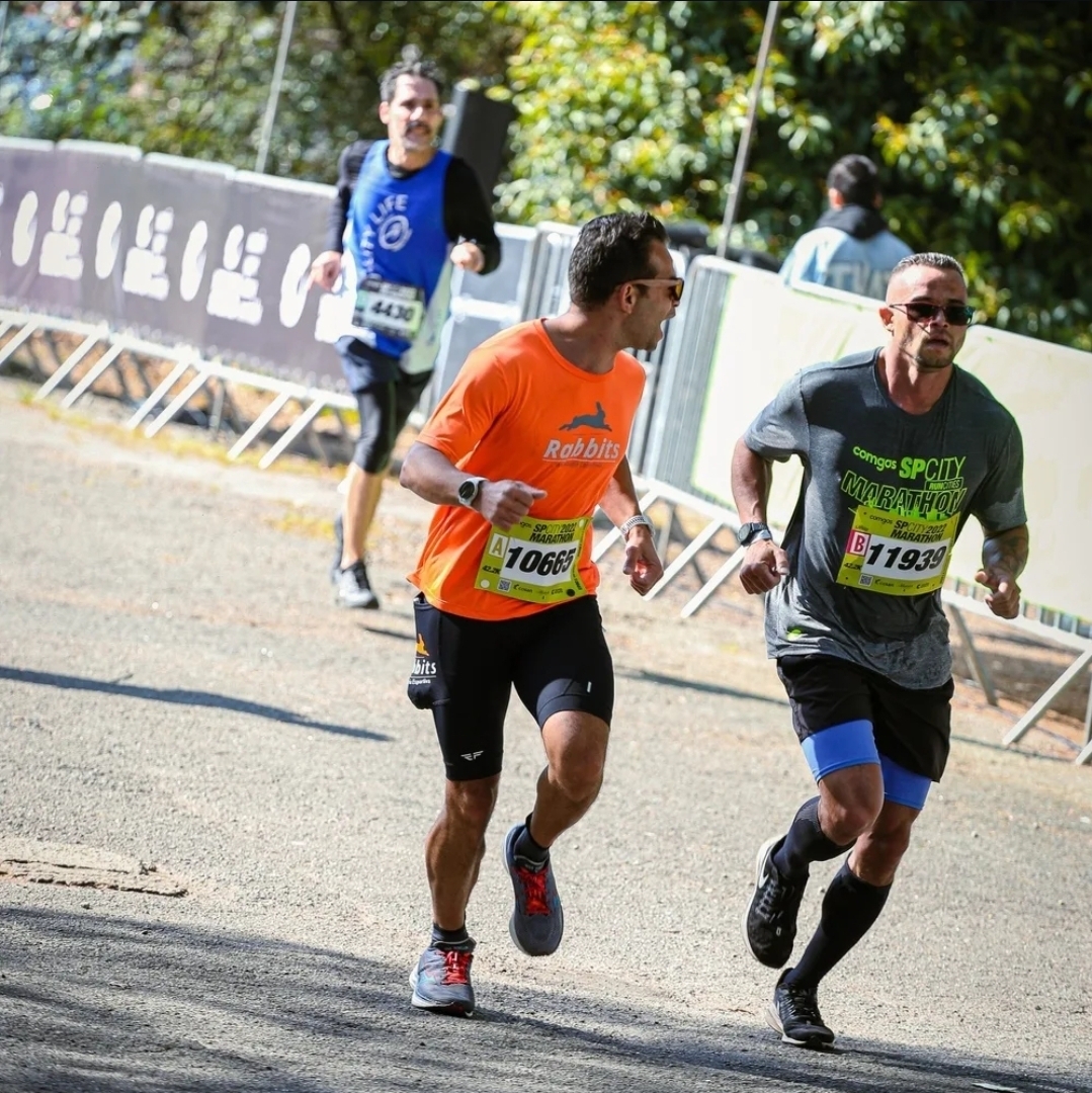 O terceiro recorte vem na meia maratona de 2025, quando a SP City deixa de ser só um teste individual e vira também uma experiência de acompanhamento. “E a terceira que eu destaco foi a meia maratona do ano passado. Eu estava muito bem fisicamente, fiz meu melhor tempo na distância e, além disso, corri acompanhando um aluno do começo ao fim.”